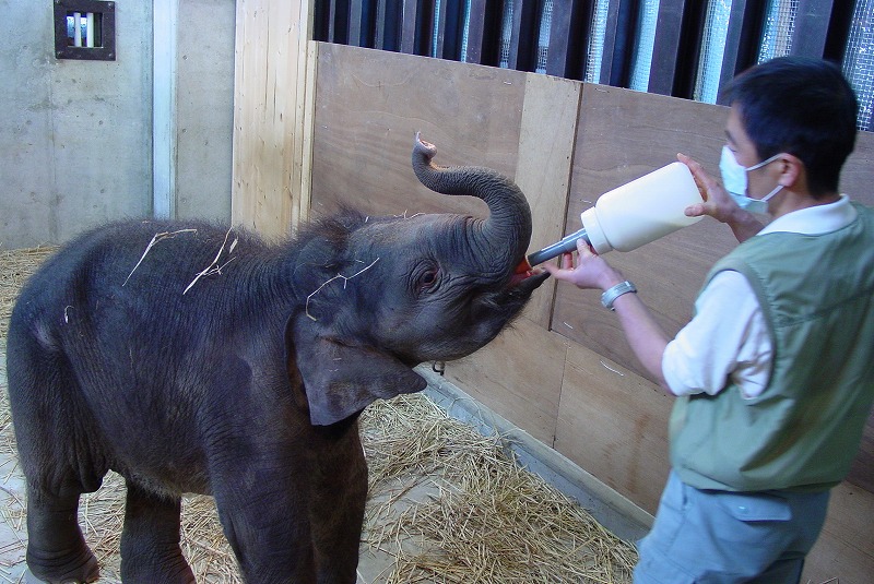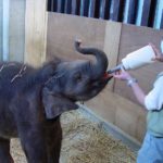 ミルクが開発されたことで、ゾウの人工哺育も上手くいくようになりました(下写真)