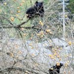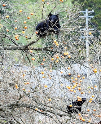過疎化による空き家の増加、管理されない土地の果実(下写真:柿)など、クマを引き寄せる